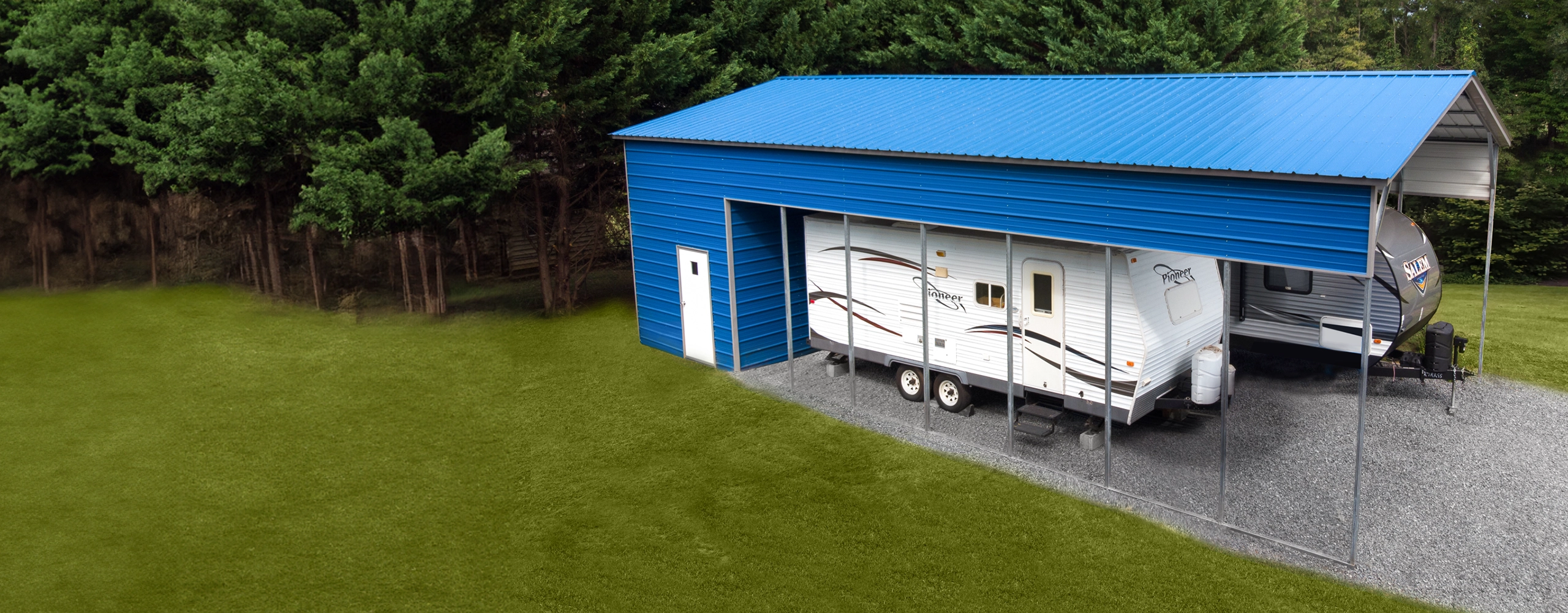 Design your metal combo carport with rear storage online or call today and let Pro Metal Buildings bring your new space to life.