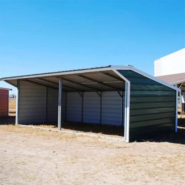 Protect your livestock with a durable and low-maintenance 12’x20′ metal loafing shed—engineered for strength, shelter, and year-round performance. Built with a sturdy 14-gauge steel frame, this shed features a vertical single-slope roof for effective water runoff, horizontal side panels, and fully enclosed sides and back to shield animals from wind and weather. The open gable front ensures easy access and excellent airflow, making it ideal for horses, cattle, or outdoor storage. Designed to last and customizable in your choice of roof color, this metal loafing shed is the smart solution for dependable livestock protection.